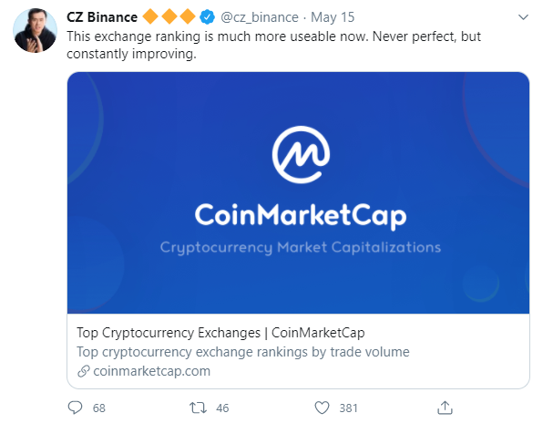 Coinmarketcap ranks and scores exchanges based on traffic for more info on exchange ranking, click here.